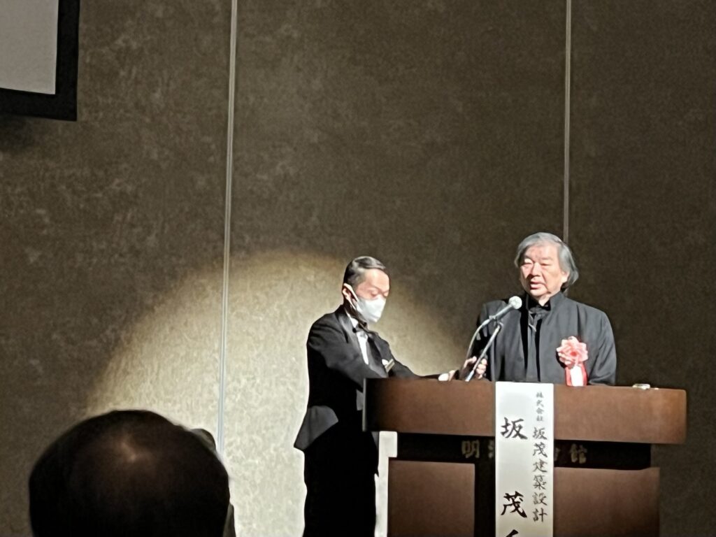 令和8年1月29日、明治記念館で催された「東京都事務所協会令和8年新春賀詞交歓会」に先立って、特別公演が行われました。今年は、建築家・板茂氏をお招きして、「作品づくりと社会貢献の両立を目指して」というタイトルでご講演いただきました。
